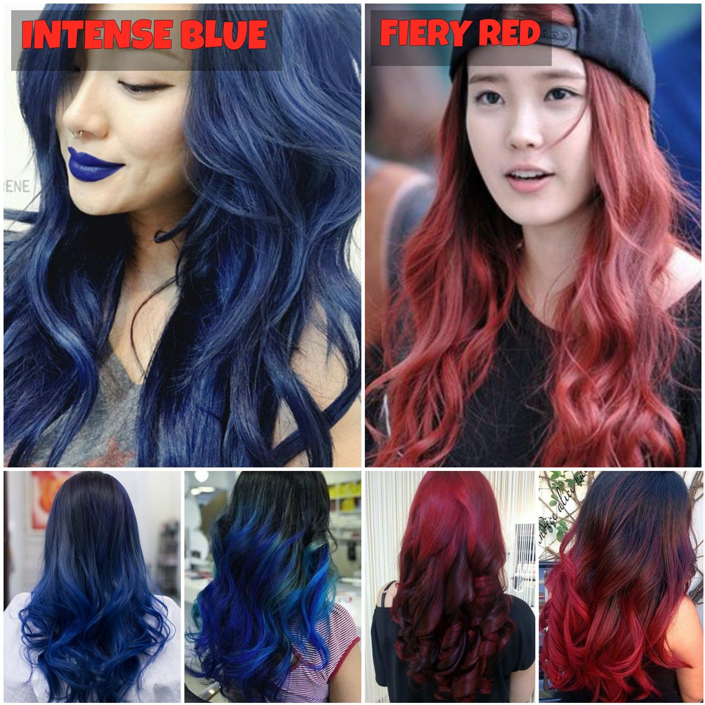 This is my regular hair dye routine. If you want to tone your red highlights that are too intense, you'll need to use a green shampoo. Red hair and blue eyes is a hard combination to find, actually the rarest combination. If you want to change your hair from red to blue, you'll have to bleach it several times. For an aesthetic look, try going for a blue and purple ombre look.